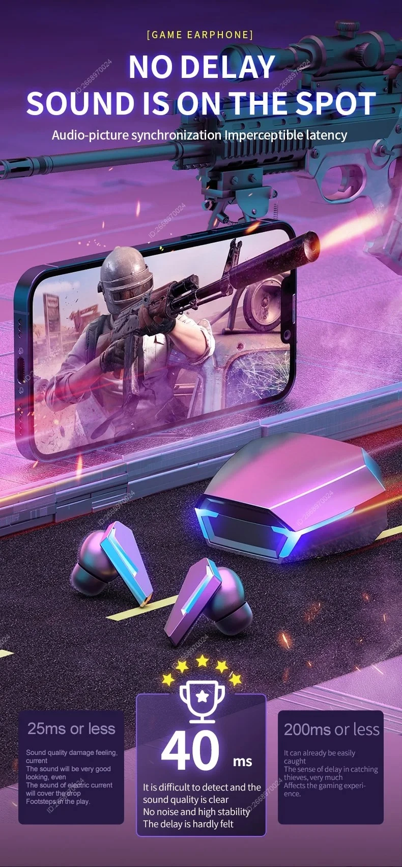 Fones de ouvido bluetooth para jogos, verdadeiro, sem fio, tws, intra-auricular, com microfone, à prova d'água, esportes, alta fidelidade, armadura balanceada para jogos