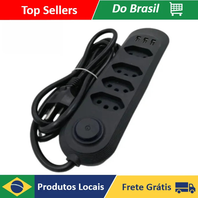 NEVERDIE STORE - Extensão Elétrica 2m Com 3/4 Tomadas com 3 Entradas USB com Botão ENVIO RAPIDO PARA TODO O BRASIL