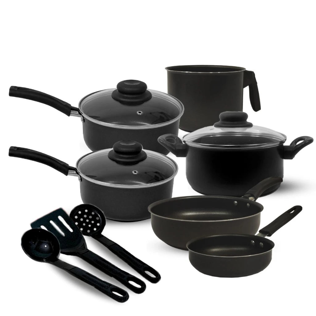 The set includes a variety of pots and sizes to suit your kitchen's needs, including a casserole with a glass lid for slow cooking and temperature conservation.