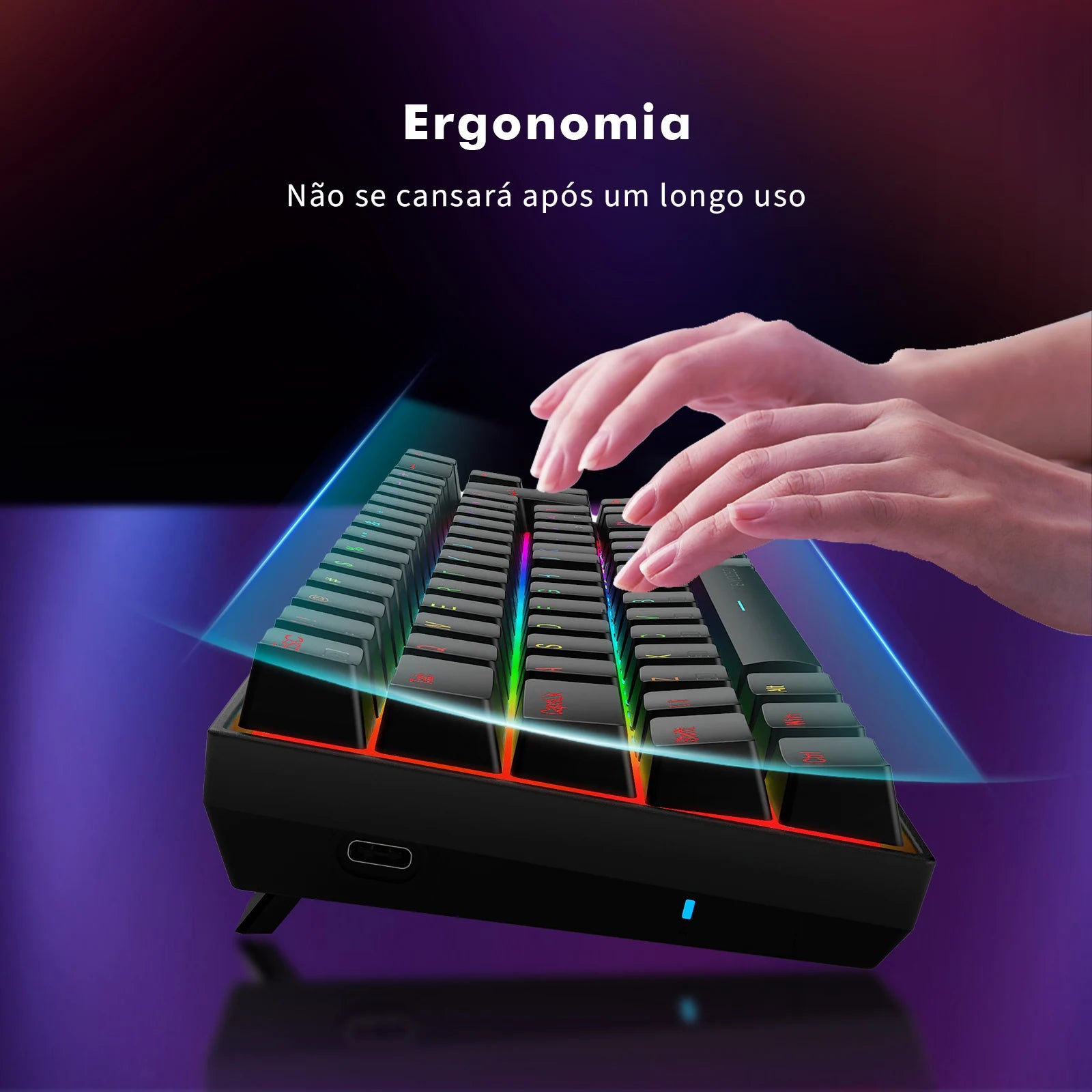 Teclado Mecânico com Cabo USB-C 68 Teclas - Switch Azul/Vermelho, Anti-ghosting e Layout Compacto para Gamers e Escritório
